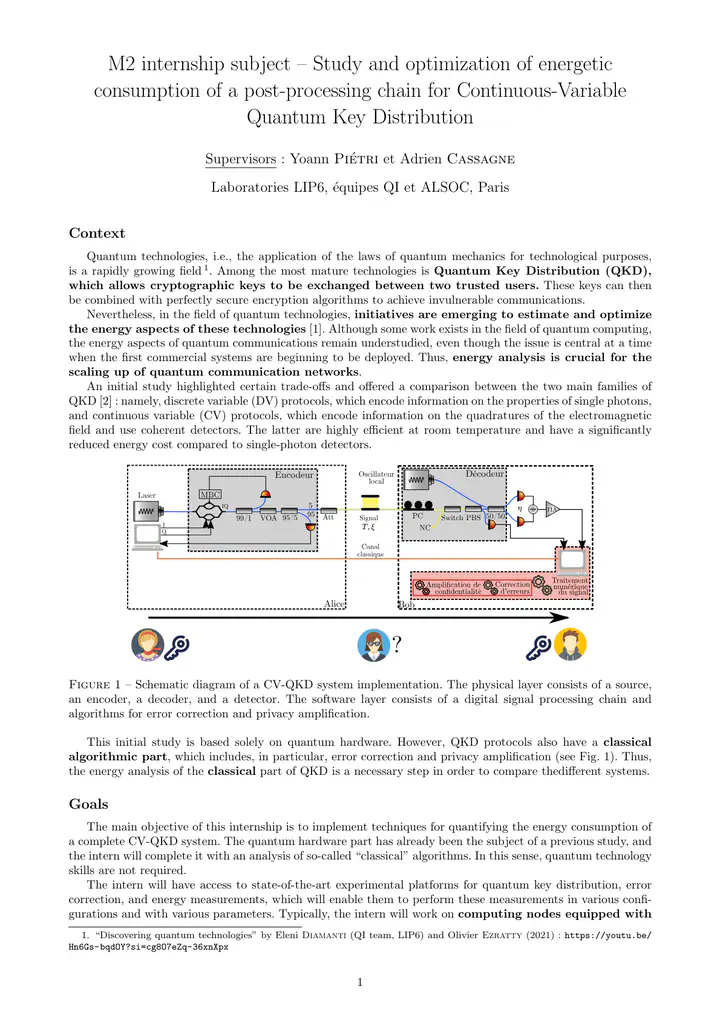 Internship offer: Study and optimization of energetic consumption of a post-processing chain for Continuous-Variable Quantum Key Distribution